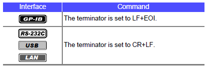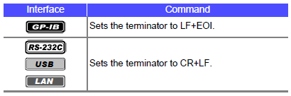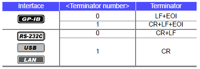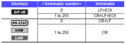 <Terminator number> = 0 to 255 (when command) / 0 to 1 (when query) (NR1) |