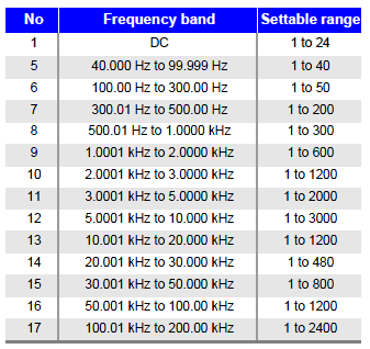 The settable range for the number of measurement waveforms varies depending on the frequency zone. |