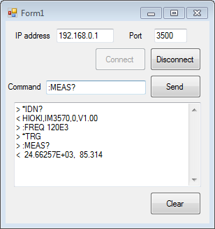 With this program, commands are sent to and received from the connected instrument.
