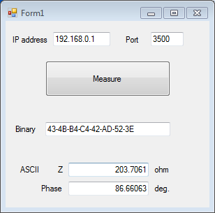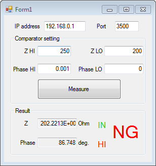 With this program, when the [Measure] button is pressed, the instrument is changed to the binary communication mode and the measured value is acquired after triggering.