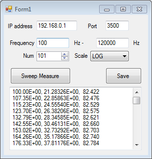 When you enter the sweep setting state and press the [Sweep Measure] button, the result is displayed in the text field.