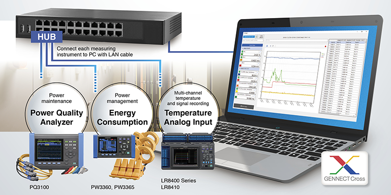 • Software automatically recognizes LAN-connected measuring instrument • Display acquired data as graphs in real-time • Windows compatible