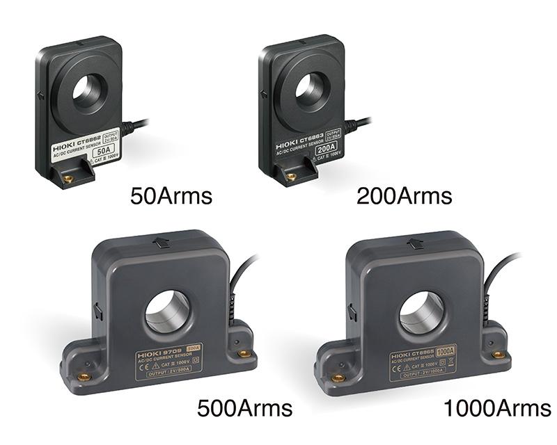 Add ±0.05% rdg. accuracy of the current sensor to the PW6001’s basic accuracy of ±0.02% rdg. to achieve top-of-the-line accuracy of ±0.07%. Choose from a diverse array of sensors to cover very small currents from 10mA up to large 1000A* loads. *Effective measurement range.