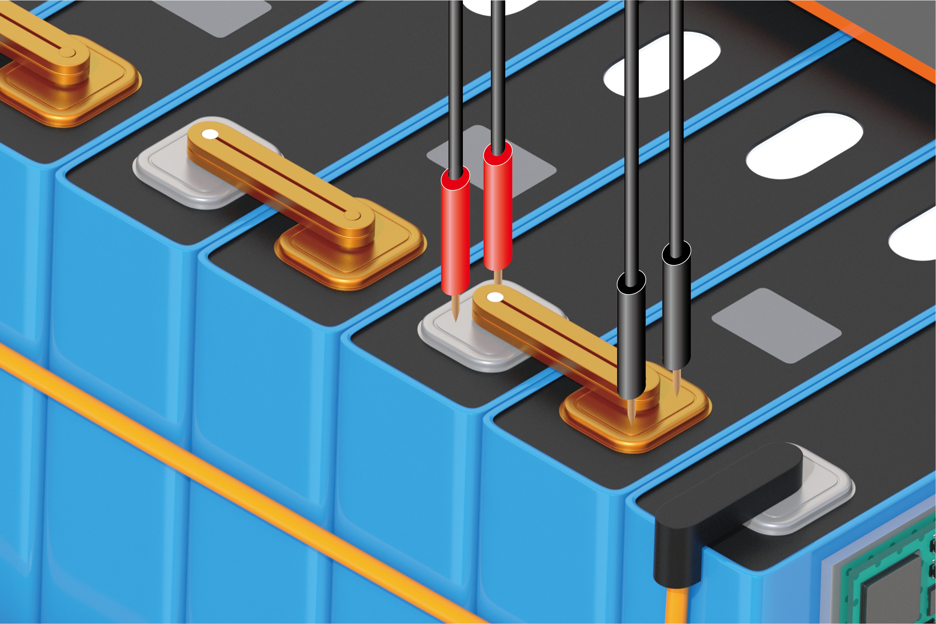 Company J built a system capable of automatically measuring super-low resistance accurately, safely, and quickly in the battery pack busbar weld inspection process by embedding the Resistance Meter RM3546 into the Flying Probe Tester FA1240-61. In the measurement of battery pack busbar welds, a difference of just 1 mm in the positions at which probes make measurements can cause measured values to change by dozens of microohms. In this way, positioning precision is critical, and Hioki's advanced probing technology makes possible automatic, accurate resistance measurement.