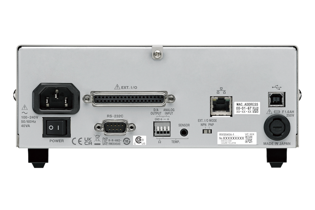 - The RM3545A-2 can be equipped with up to two optional Z3003 Multiplexer Units, allowing it to measure up to 20 channels (using the 4-terminal method)