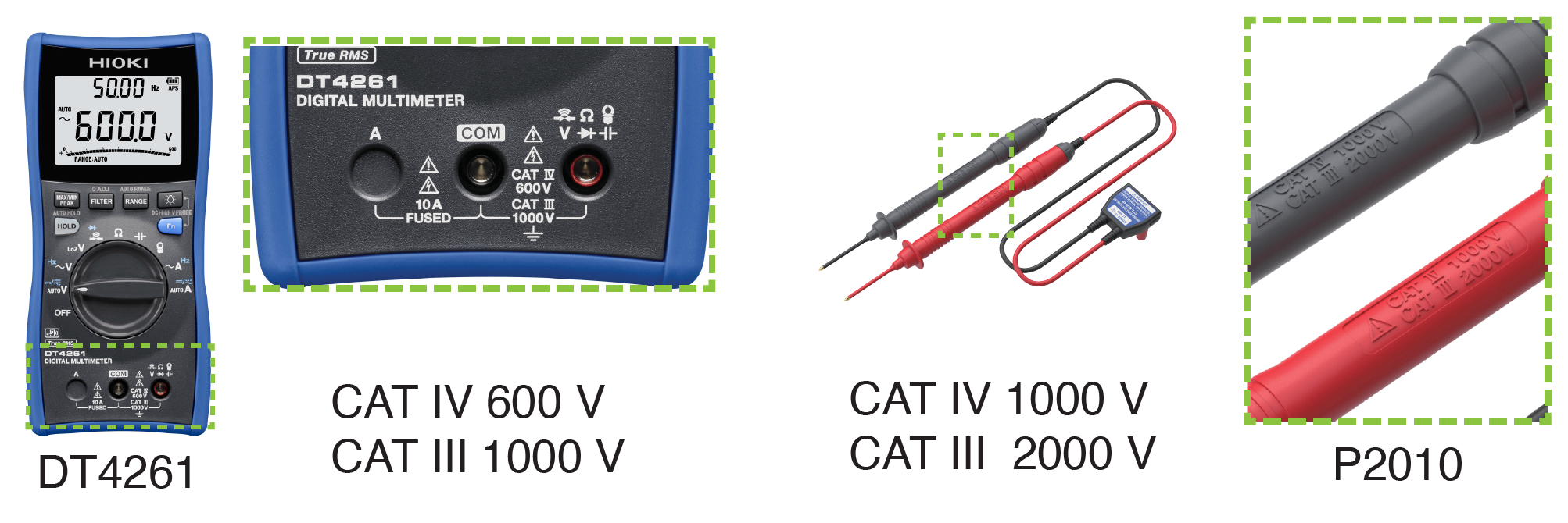 Since the output of P2010 is 130 V when measuring 1300 V, voltage measurement is possible with a CAT III 1000 V measuring instrument. To exaggerate, it is also possible to perform measurement even with a “no measurement category” 200 V instrument.