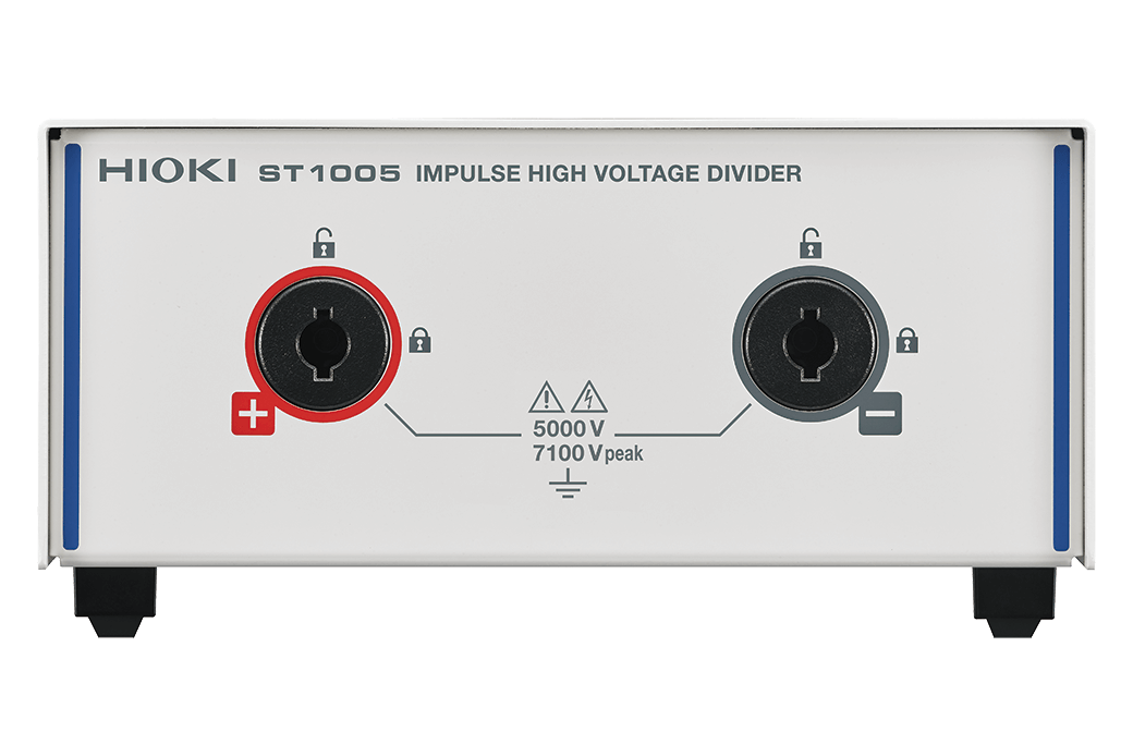 ST1005 is a high-accuracy voltage divider that converts high-voltage signals—up to 5 kV rms/7.1 kVpeak—at a 1000:1 ratio. With excellent frequency characteristics from DC to 10 MHz (–3 dB), it delivers a flat response across a wide frequency range. This makes it ideal not only for accurate voltage measurements and waveform observation at surge PD testing, but also for a wide variety of other high-voltage applications.