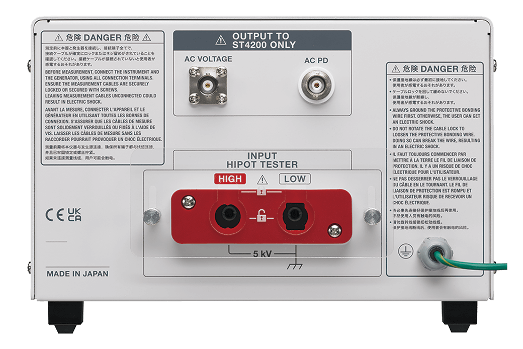 The ST9210 enables AC partial discharge (AC PD) testing when used in combination with the ST4200-50 Partial Discharge Detector and an AC high voltage source. It supports discharge detection up to 5 kV rms/7.07 kVpeak and can be paired with your existing AC high voltage source (such as a withstand voltage tester). Ideal for creating a test environment in the development and evaluation stages before full system integration.