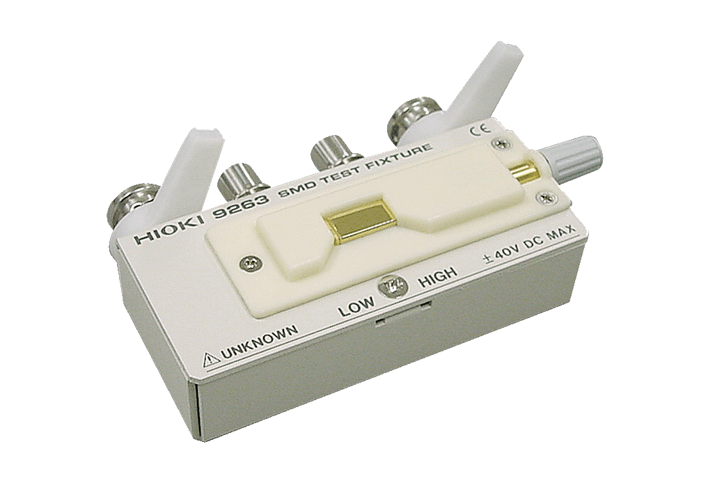 Direct connection type, For measuring SMDs with electrodes on the side; DC to 120 MHz, test sample dimensions: 3.5 mm ±0.5 mm (0.14 in ±0.02 in)