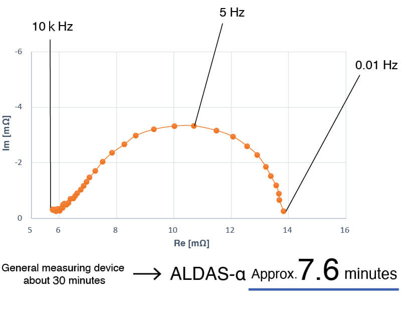 Featuring a high-precision current sensor, ALDAS-α delivers exceptionally accurate EIS measurements. It enables much faster cell research and evaluation than is possible with conventional equipment.
