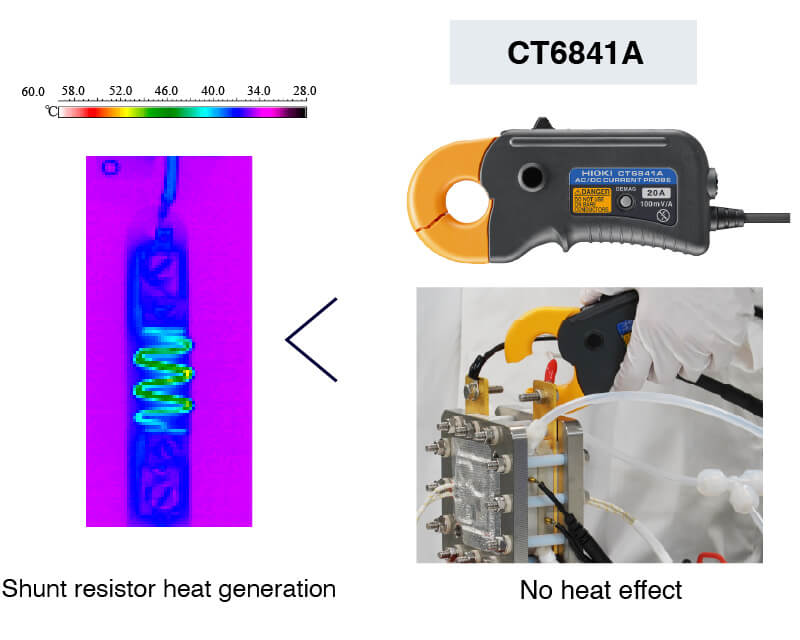 While many instruments use a shunt resistor method to measure current, this is susceptible to temperature drift. ALDAS-α uses a flux-gate current sensor instead. This completely avoids drift-related issues for stable, long-term measurements. Hioki's specialization in current sensor technology makes us the only manufacturer to achieve this level of precision with clamp-type current sensors.