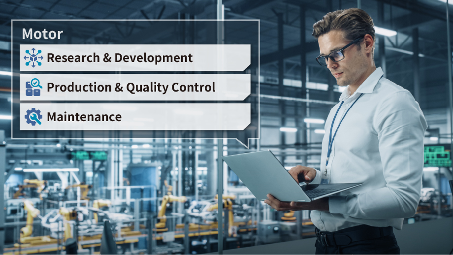 Hioki delivers comprehensive solutions for ensuring motor quality and performance. Our high-precision measuring instruments empower multi-dimensional evaluations, optimizing production line inspections and driving operational efficiency. Achieve superior performance, fewer failures, and more efficient operations with Hioki’s trusted technology.