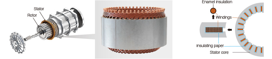 High-voltage inverter-driven motors, such as those found in EVs, are more prone to partial discharge phenomena. In general, partial discharge occurs when a voltage greater than approximately 350 V is applied to a poorly insulated winding. Consequently, not only inverter-driven motors but also high-voltage industrial motors are susceptible to this risk. Partial discharges occur in areas of the motor winding where insulation integrity is compromised. These discharges further exacerbate insulation degradation over time. The progressive deterioration of insulation, stemming from these partial discharges, can ultimately lead to severe consequences, including fires due to short-circuits and complete insulation breakdowns.