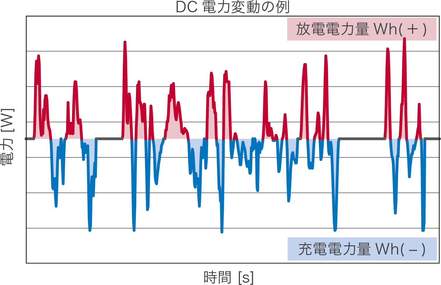 500kS/sのサンプリングごとに充電電力と放電電力を極性別に積算し、正方向電力量、負方向電力量、正負方向電力量和を測定します。