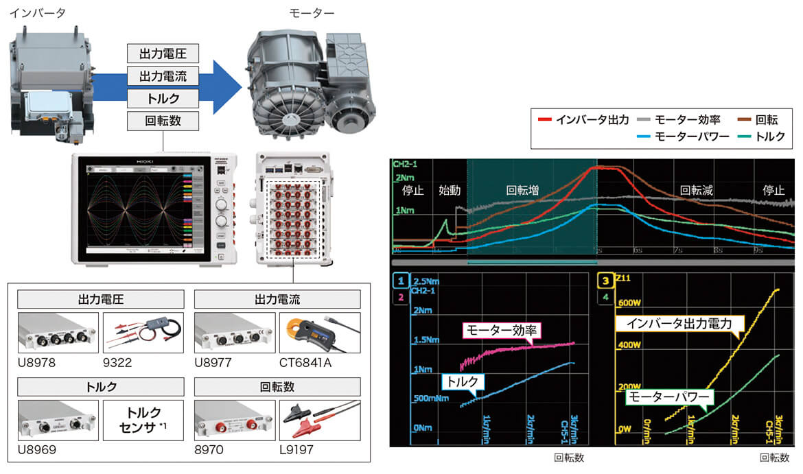 波形演算でインバータ出力電力・モーターパワー・モーター効率を算出