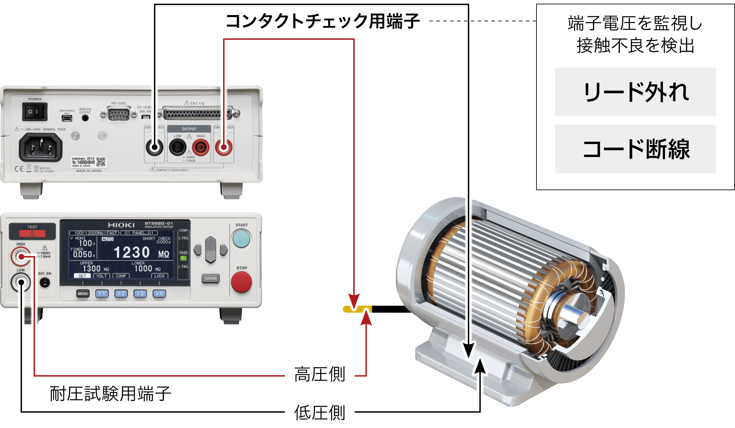 絶縁劣化の発生は、感電や漏電のリスクにつながります。製品の安全性を保つために出荷検査時に絶縁状態の検査を行います。