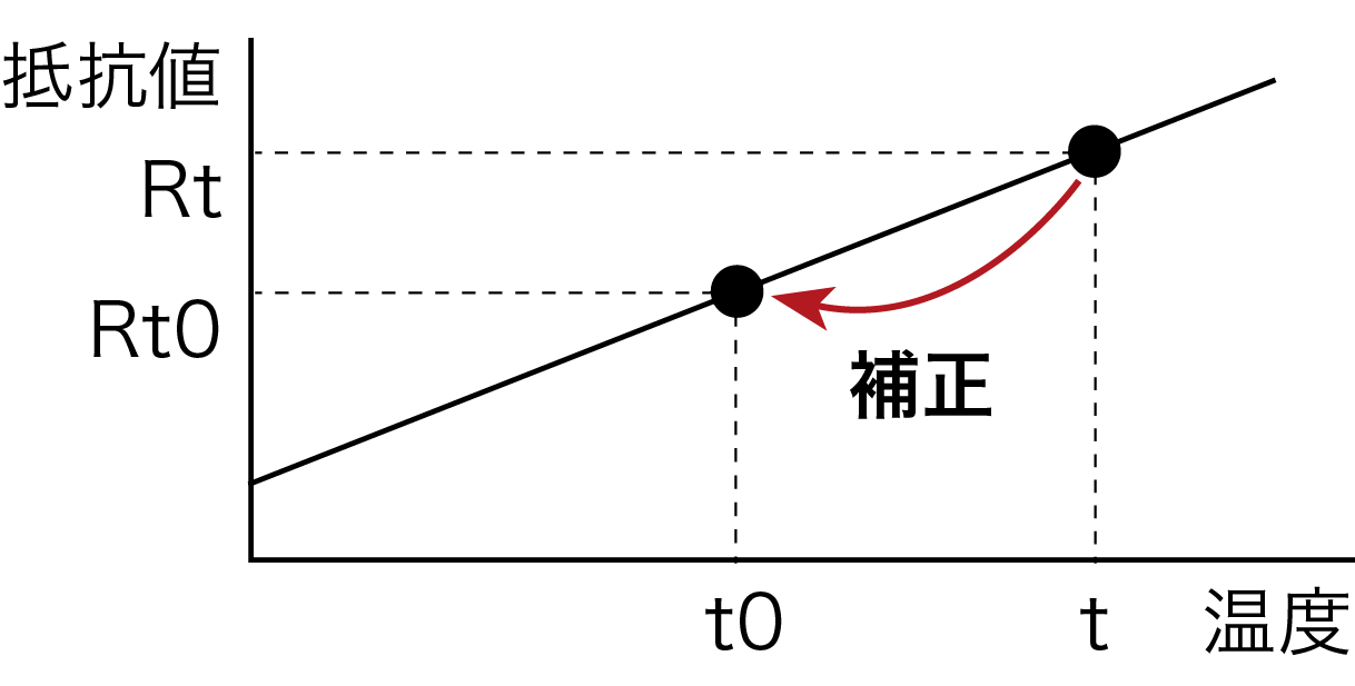 - 環境温度補正 線材の抵抗値は温度によって変動する為、温度補正を行う必要があります。