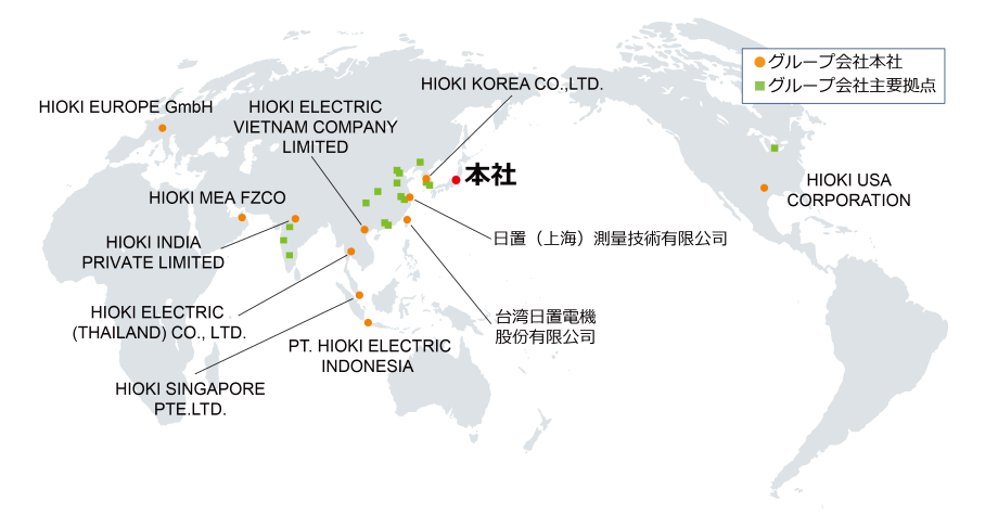 HIOKI USA CORPORATION (米国販売会社) | 18383 Preston Road, Suite 150, Dallas, TX 75252, U.S.A. TEL +1-214-281-4546 URL: https://www.hioki.com/us-en |