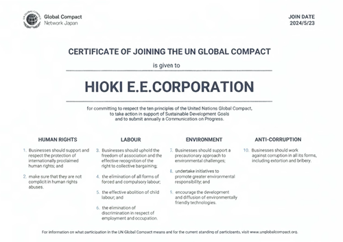 HIOKI(日置電機株式会社:長野県上田市、代表取締役社長:岡澤尊宏)は、2024年5月から世界最大のサステナビリティ・イニシアチブである「国連グローバル・コンパクト」に参加しました。