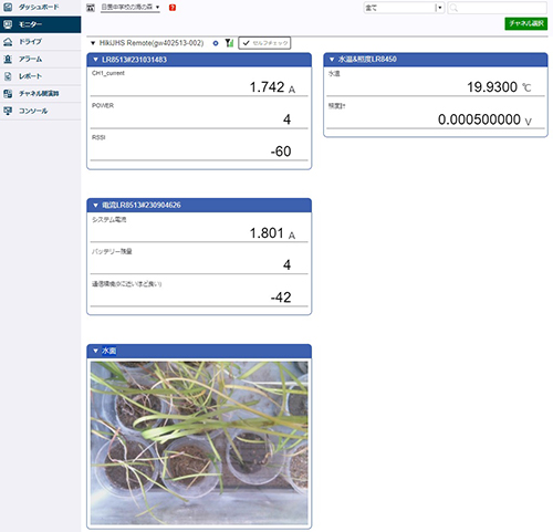 育苗をしている水槽はHIOKIのGENNECT技術により状態監視をしています。