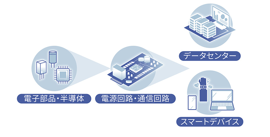 スマートデバイスの高機能化や電気自動車、産業用ロボットの普及、空調設備の効率化など、現代のエレクトロニクスには高度なコンポーネントが必要不可欠です。抵抗器、コンデンサ、半導体、モーターなどの部品には、より高い信頼性とスループットが求められています。