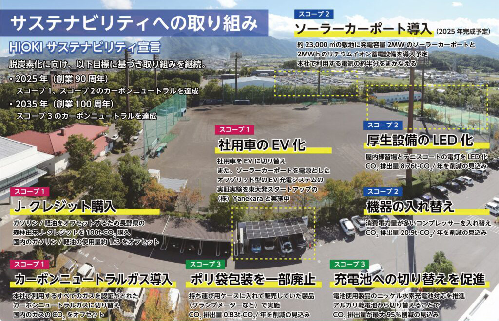 ISO 14001/ISO 9001 - HIOKIはサステナビリティ基本方針を定め、サステナビリティ宣言により脱炭素社会へ向けてカーボンニュートラルの目標を公開しています。