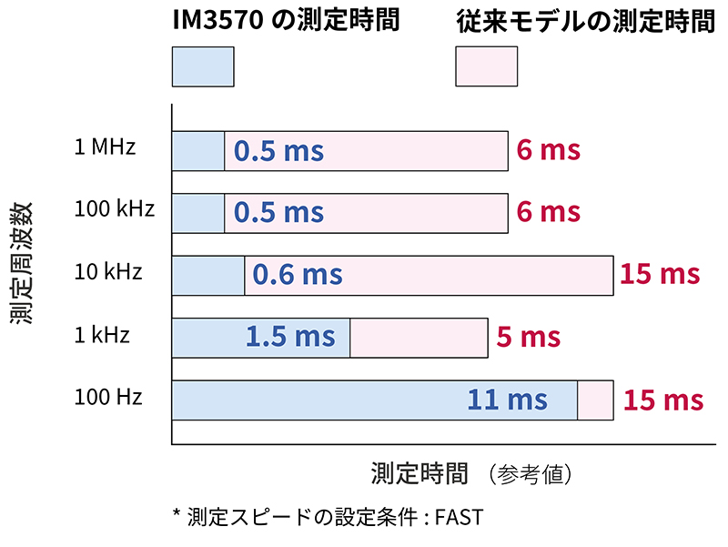 - IM3570と従来モデルの測定時間の比較