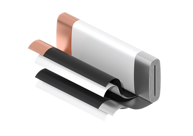 正極シートと負極シートの間にセパレーターを挟み、電極シートを巻回または積層します。