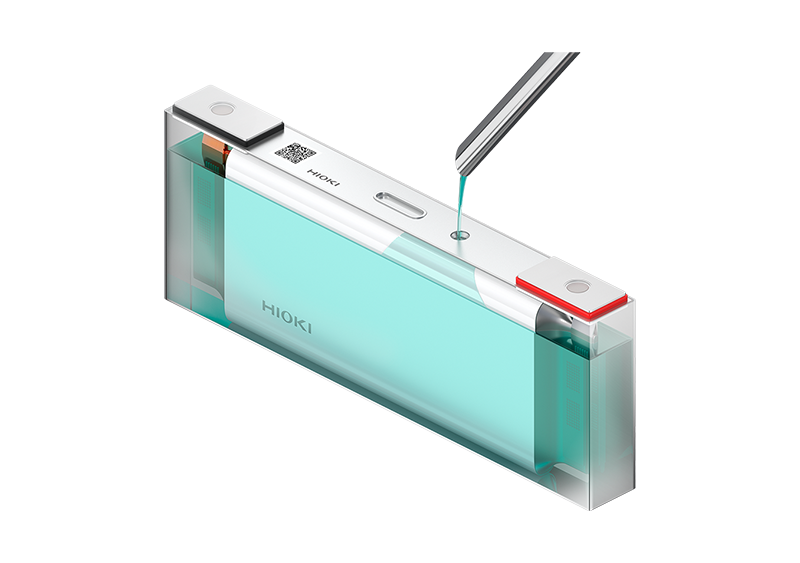 電池セルの正極と負極間、電極と外装間の絶縁抵抗を測定します。