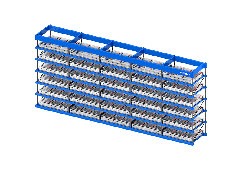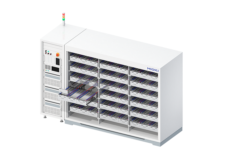 充放電の工程では、電池の状態変化を監視するために、電圧と温度を記録します。記録したデータを解析し、不良品の検出や電池のランク分けを行います。