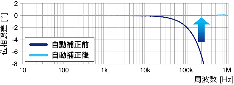 また、従来は電流センサーごとに補正値を入力していた位相誤差を、パワーアナライザ側で自動補正する機能を搭載しています。同じ型式で僅かに異なる個体差も、自動で補正されます。これにより、補正忘れがなくなり、測定準備の工数も削減され、測定確度と再現性が高まります。