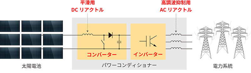パワーコンディショナーは、目的に応じて電気エネルギーを適切な状態に変換します。例えば、太陽光パネルで発電された直流の電力を交流の電力に変換し、電力系統へ送電します。