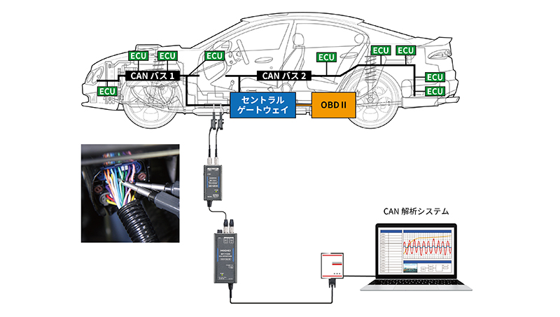 自動車の開発・評価に欠かせない、CAN通信線の信号取得作業が困難だった