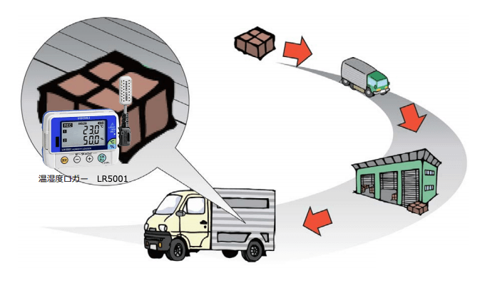 ・輸送する荷物にLR5001温湿度ロガーを同梱します。