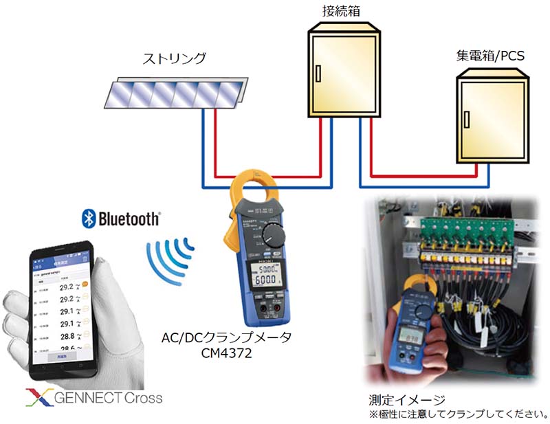 AC/DCクランプメータCM4371を利用することで、売電中に異常があるストリングを検出します。