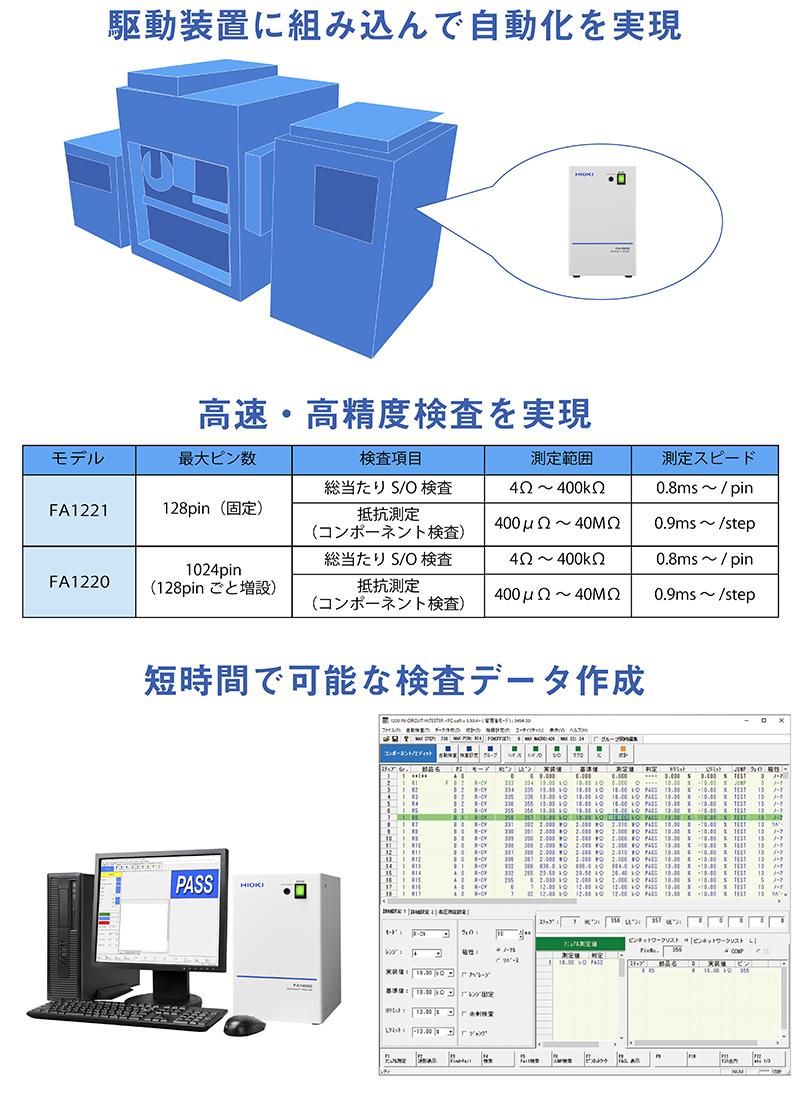インサーキットテスタ FA1220、ショート・オープンテスタ FA1221は、生産現場の課題に応える製品です。