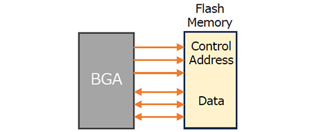 Flashメモリに対してリード/ライトを行い、Flashメモリ間の結線をテスト
