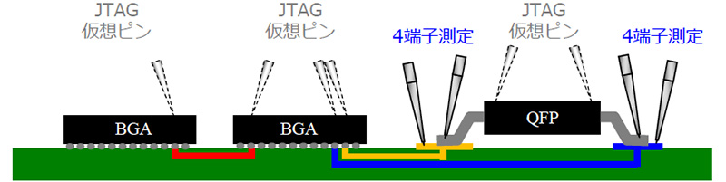 - 増えるBGA/QFN部品。BGA-BGA間の接続保証はJTAGテストが最も効率的。