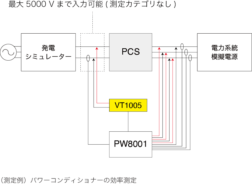 VT1005を使用すると最大5000 Vの電圧をパワーアナライザで測定できます。