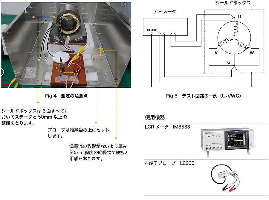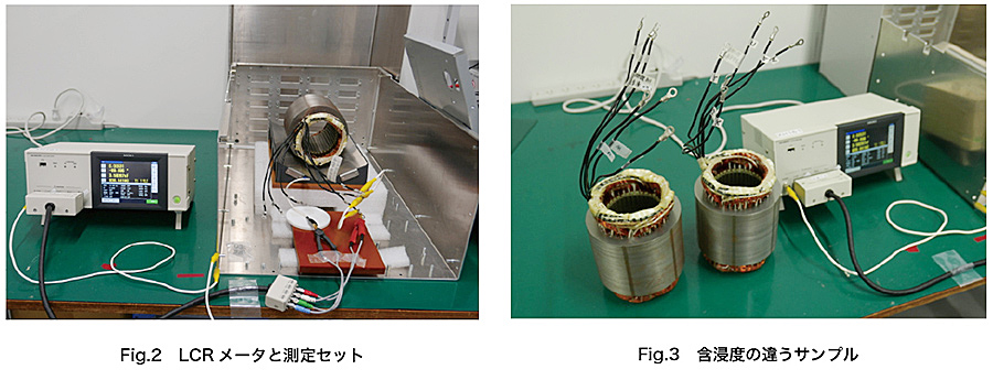 LCRメータによるモーターのワニス含浸状態の試験