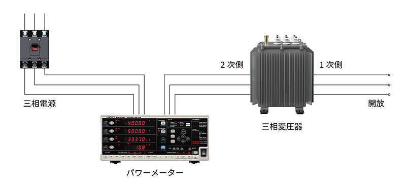 1次側、2次側に測定器を直接接続して、1次インダクタンスや2次インダクタンスを測定します。これらを測定する場合には、ほかの巻線はすべて開放状態にしておきます。