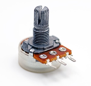 固定抵抗器は、主なものとして炭素皮膜抵抗器と金属皮膜抵抗器があり、抵抗体に炭素が使われているか金属が使われているかによって異なります。抵抗値は一定です。可変抵抗器は、抵抗値を変えることができる抵抗器。半固定抵抗器は、電圧や電流の微調整のために使用される可変抵抗器です。