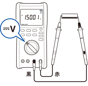 マルチメーターで、電圧を測定する場合には、プラスとマイナスのテストリードを装着して、電圧測定(V)にロータリースイッチを切り替えます。次に、測定対象の両端にテストリードを接続します。アナログテスターの場合、電圧の測定レンジは、大きめの数字からあわせていきます。
