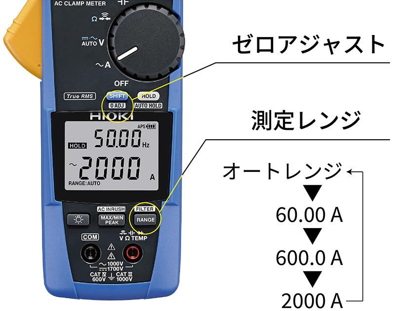 そして、定格の範囲外、または仕様の最大入力電流を超える電流を測定しないでください。
