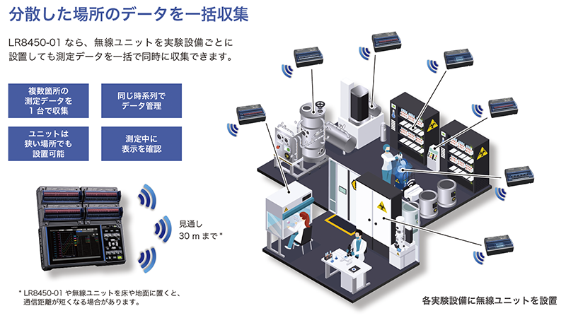 HIOKIのデータロガー LR8450-01は無線入力ユニットをサポートしています。