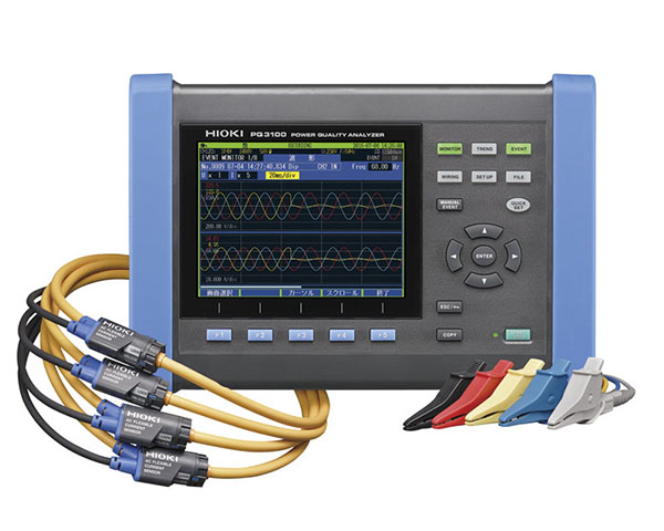 電源品質アナライザーは受変電設備の障害や電子制御機器の誤動作を引き起こす原因がどこにあるのかを調査するために、周波数、電圧、電流、電力の値や波形などの測定が可能です。