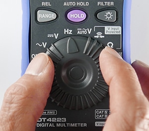 デジタルマルチメーターは簡単に周波数を測定できますが、測定をする際の注意点がいくつかあります。まずはテストリードを測定対象の回路に接触させる前に、測定機能が周波数測定(Hz)となっていることを確認しましょう。測定機能が間違った状態でテストリードを接触させると故障の原因になりかねません。
