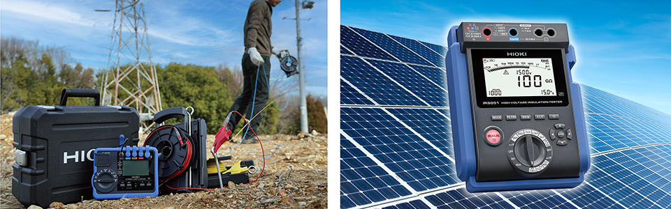 - 写真左:接地抵抗計 FT6041、写真右:高電圧絶縁抵抗計 IR5051
