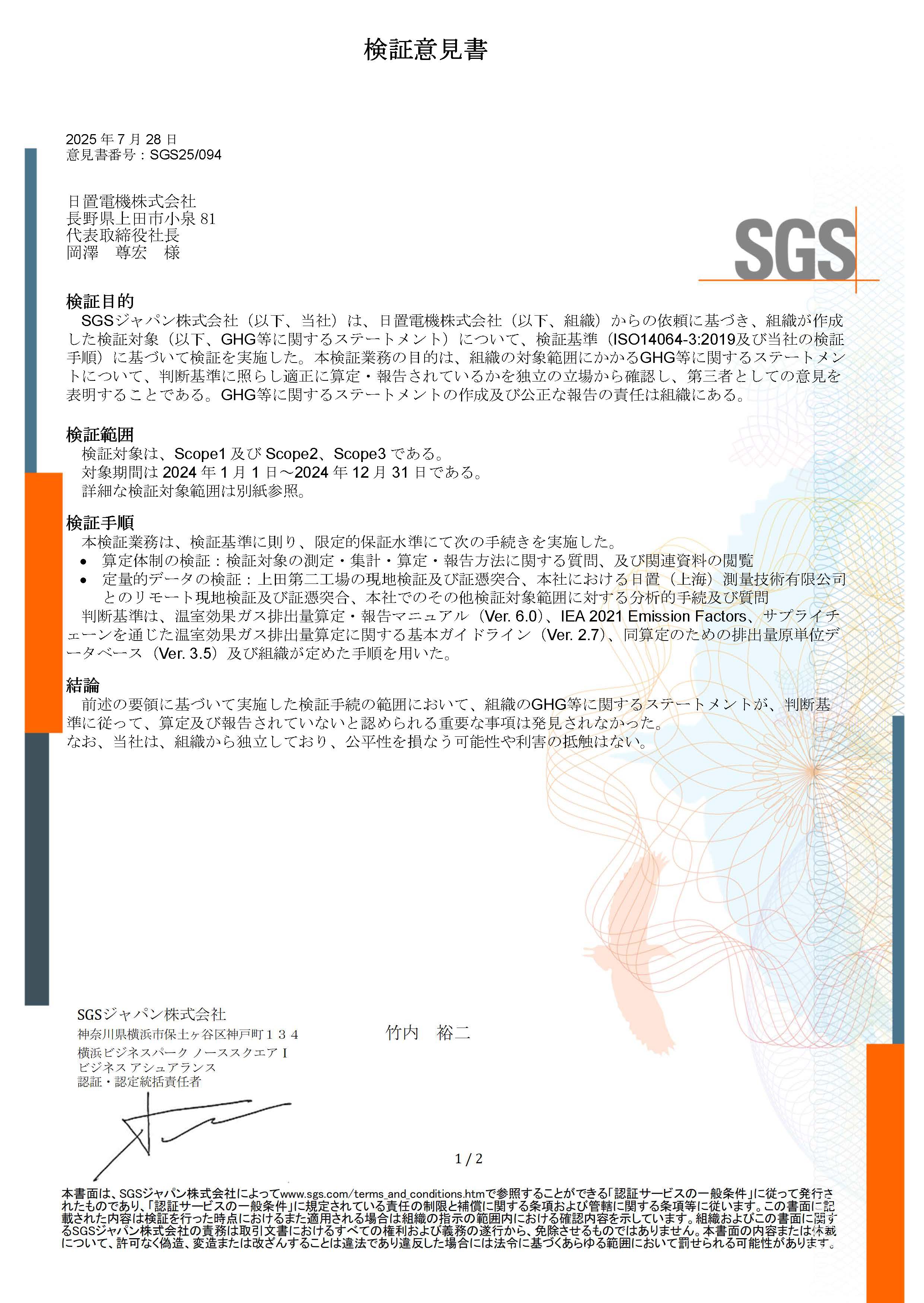 第三者検証意見書においては、スコープ1およびスコープ2の排出量以上に相当する非化石証書、カーボンニュートラル認定証書、無効化通知書の取得・投資が確認され、当社が排出量と同等以上のCO₂削減に投資していることが証明されています。