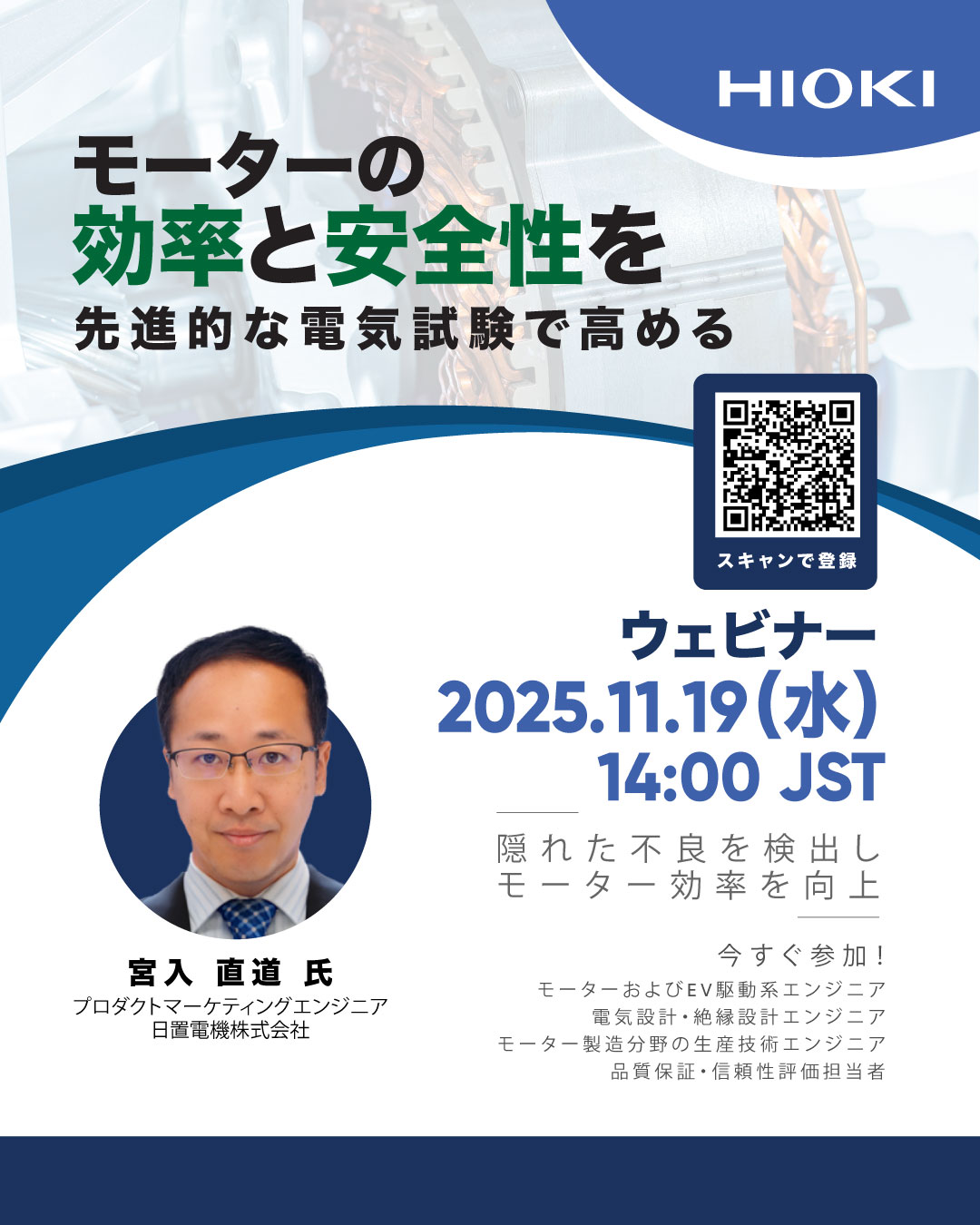 ※質疑応答が可能なリアル受講と、後日動画配信のみの受講のいずれかをお申し込みできます。 - 講 師:日置電機株式会社 プロダクトマーケティングエンジニア 宮入 直道